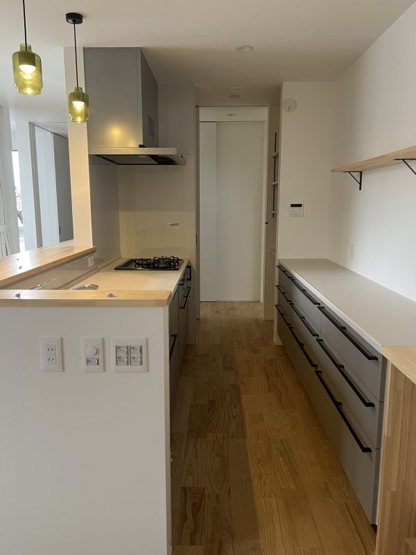 調理している間、家族は前の通路を通るのでぶつかりません。