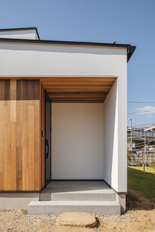 「リビングとテラスで繋がる家」~R壁の飾り棚